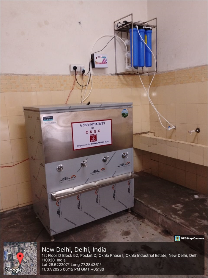 Water cooler and aqua purifier installed by swawlamban at 8 MCD school at Delhi .A CSR initiatives by ONGC